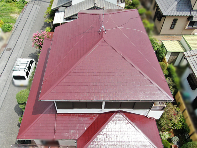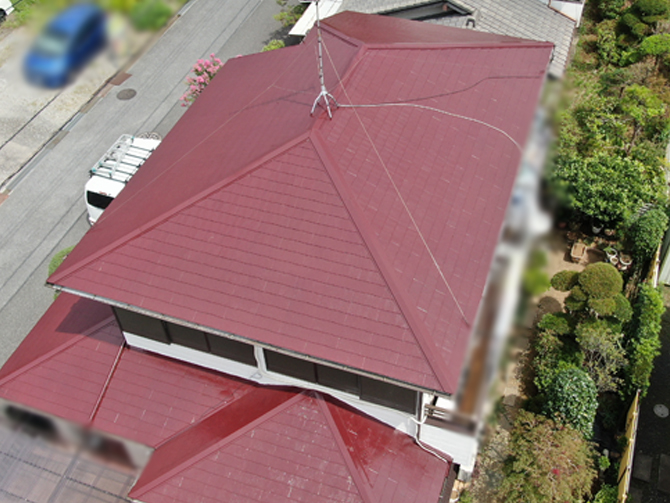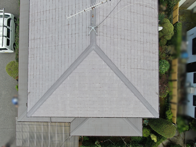 長年にわたる風雨や紫外線によって劣化したスレート屋根の再塗装を実施しました。