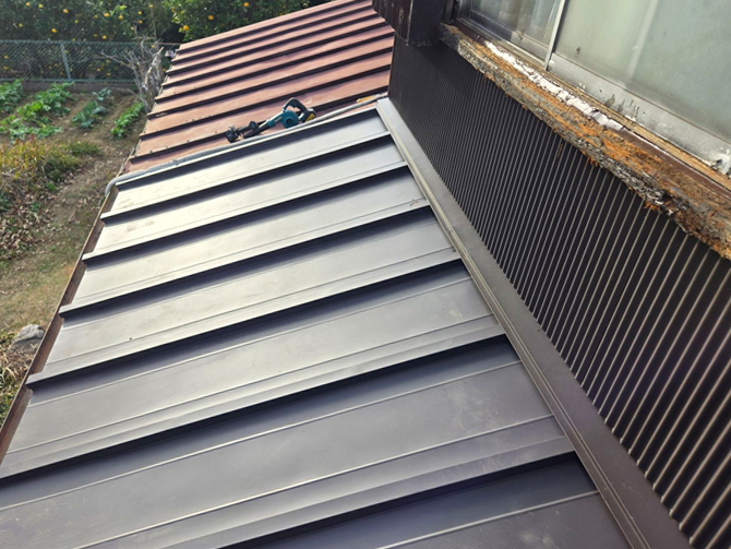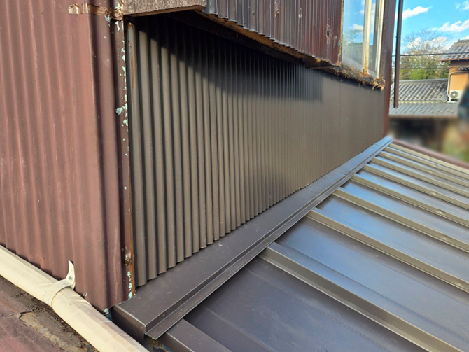 既存と同じ瓦棒葺き屋根で部分的に葺き替えることで、