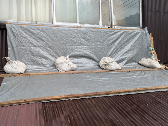 雨漏りが止まらず、シートによる応急処置で対応されている状態でした。