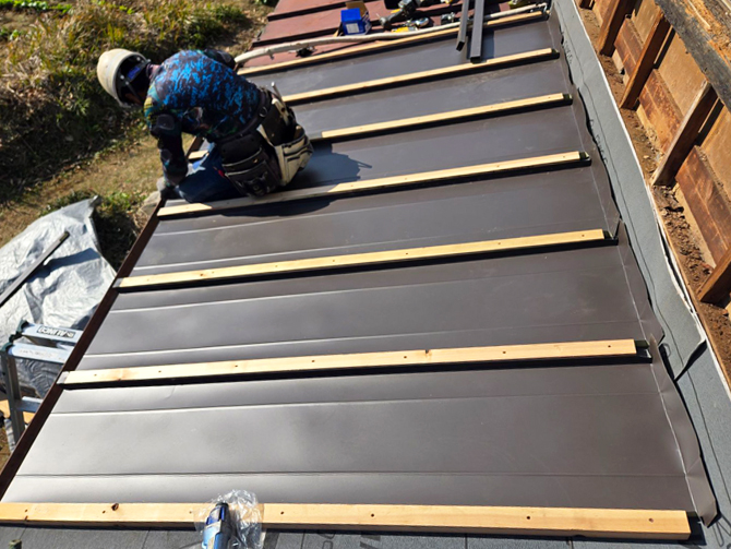 新しい瓦棒葺き金属屋根を施工。板金一枚一枚を丁寧に取り付け、