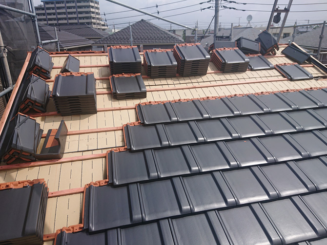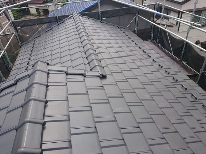 市原市の築39年住宅にて、従来の瓦屋根を防災瓦へと葺き替える工事を行いました。