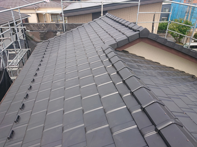 防災瓦による美しい屋根に一新。耐風・耐震・防水性能が備わり、長期的に安心できる仕上がりとなりました。