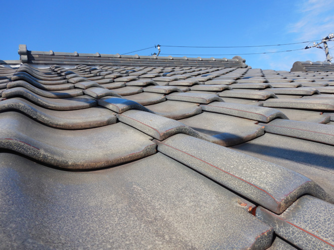 ズレやすく、雨漏りの危険がある従来瓦の屋根。